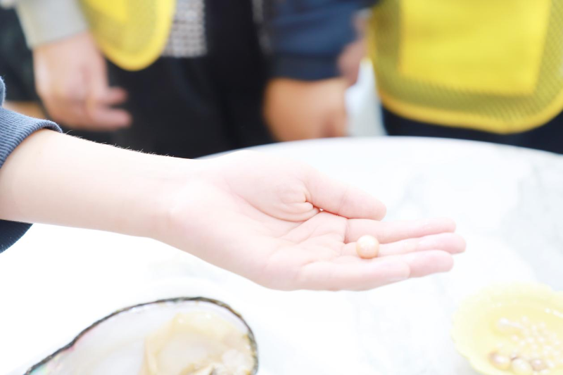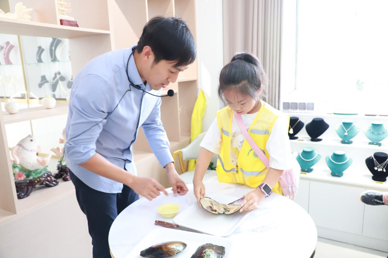 午后,队伍走进珍珠文化馆与石磨文创基地。在珍珠文化馆,通过实物展示,青少年了解珍珠形成的生物原理,以及养殖、加工从传统到科技化的变迁。