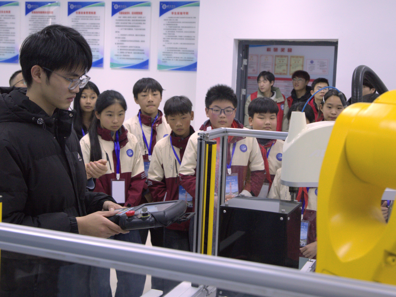 2025年12月11日,在蚌埠市科学技术协会的指导下,蚌埠市电子信息学会组织怀远县淝河镇中心学校41名师生,走进蚌埠学院与安徽机电技师学院,开展了一场以“走进大学校园,感受科技与文化魅力”为主题的科普研学活动。活动通过“科技+文化”双线并行的沉浸式体验,为乡村学子开启了一场启迪心智的探索之旅。