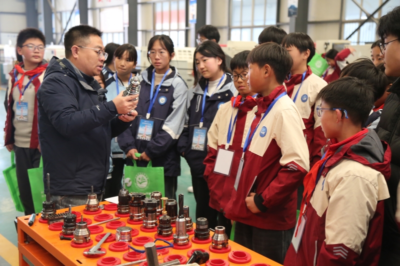 下午,师生转赴安徽机电技师学院。学院副院长黄晓波在欢迎辞中强调“技能创造未来”,鼓励同学们在实操中感悟科技魅力。每位学生获赠“机电小工匠”纪念徽章,眼中洋溢着自豪与期待。