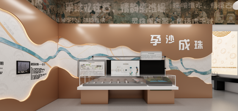 新建展厅以“孕沙成珠,闪耀淮畔”为主题,共设“诗意珍珠”“淮畔珠迹”“孕沙成珠”“慧眼识珠”“珠工巧琢”“珠联璧合”六大展览板块。展厅综合运用生态造景、多媒体交互、机电互动及实物展陈等多种形式,系统展示蚌埠珍珠的历史文化脉络,科学解读珍珠形成原理,推介生态养殖技术,以新质生产力理念助推蚌埠珍珠产业创新发展。