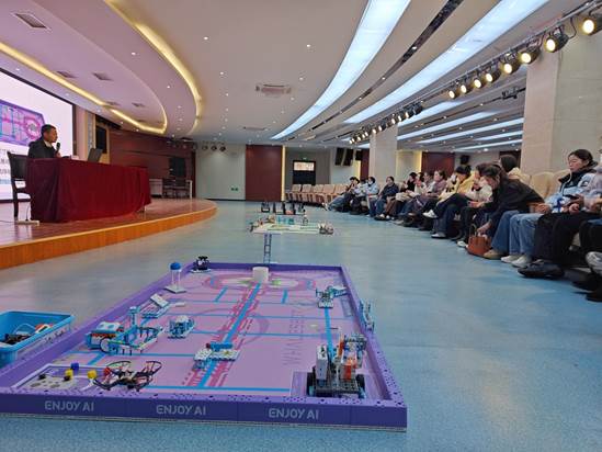 结合人工智能与蚌埠市青少年机器人竞赛,市科协邀请安徽青少年机器人竞赛金牌教练为大家解读各赛项规则并现场互动展示,学员们在实践交流中体验到了比赛的魅力。