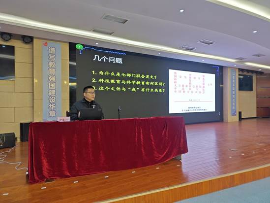 安徽省信息技术应用能力提升工程省级培训专家周本阔主任带大家学习《教育部等七部门关于加强中小学科技教育的意见》精神并带来了《中小学人工智能通识教育核心内容与实践路径》讲座。继2023年教育部等十八部门联合印发《关于加强新时代中小学科学教育工作的意见》后,2025年教育部等七部门联合印发《关于加强中小学科技教育的意见》,并强调将中小学科技教育作为推动教育强国建设的重要抓手。周本阔主任第一讲就是对该文件的解读,希望各位科技辅导员老师要准确把握国家科技教育的战略方向,将“为党育人、为国育才”的使命融入日常教学,确保科技教育工作始终沿着正确的轨道前进。