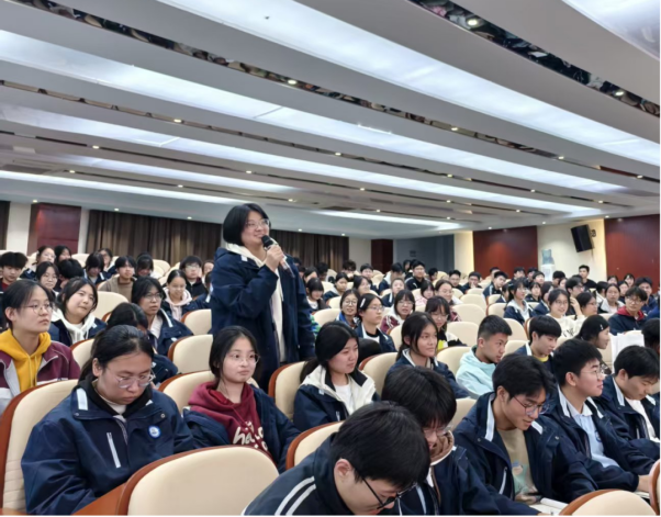 讲座尾声的问答环节,同学们就“大学地质类专业的招生要求”“地质相关专业的就业前景”“日常生活中如何辨别身边的矿产制品?”等提出问题。面对同学们的疑问,张教授结合行业发展趋势与自身经验,给予了专业、详实的解答。