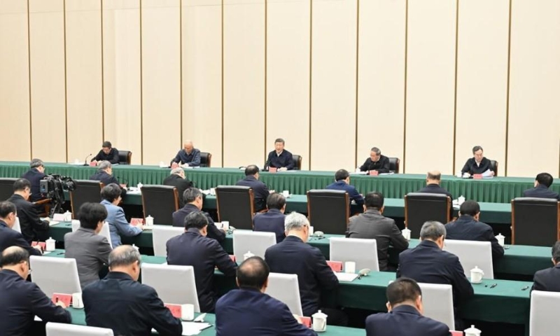 3月23日,中共中央总书记、国家主席、中央军委主席习近平在河北雄安新区考察,并主持召开深入推进雄安新区高质量建设和发展座谈会。这是23日下午,习近平主持召开深入推进雄安新区高质量建设和发展座谈会并发表重要讲话。新华社记者 谢环驰 摄