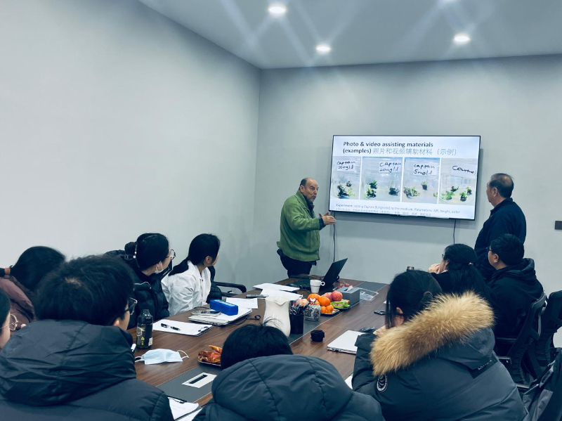 本次培训内容涵盖花卉苗木组培数据库建立、营养基优化、常见问题解决方案及标准化操作流程等关键环节。通过理论讲解与现场实操相结合方式,Avihai Ilan博士系统演示了标准化操作流程,并就如何优化生产体系、提升品控与种苗生产效率进行了深入指导。
