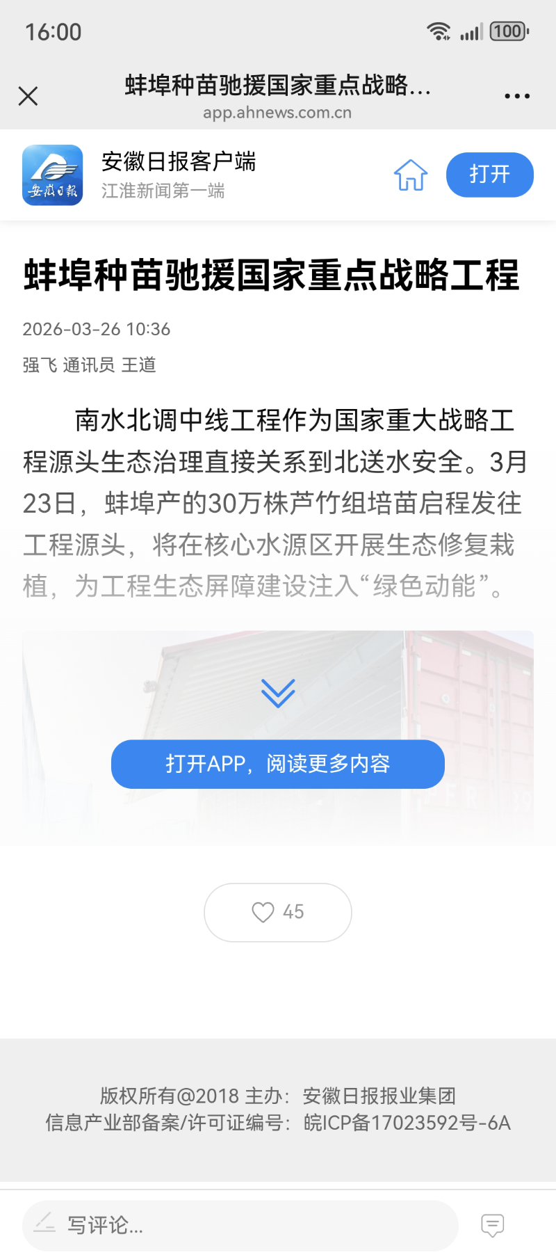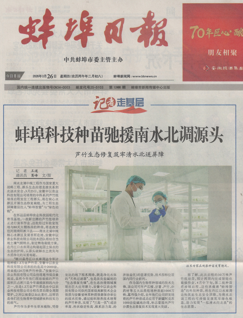 3月23日,市花卉协会会员单位-安徽中以农业科技有限公司培育的中科系列芦竹组培苗,发往南水北调中线工程源头-河南南阳淅川县,将用于核心水源区生态修复栽植,为国家重大战略工程生态屏障建设注入“蚌埠智慧”与绿色动能,安徽日报、蚌埠日报等省市主流媒体对此进行集中报道。