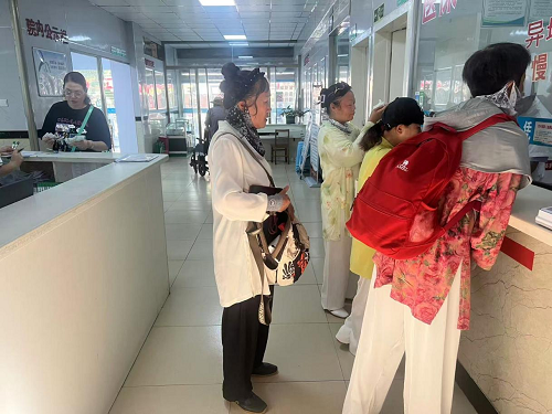 在体检筹备阶段,社区科普志愿者通过多渠道开展通知工作:一方面在各微信网格群精准推送体检通知,确保信息快速触达;另一方面在辖区各小区楼栋公告栏张贴宣传告示,扩大信息覆盖范围;同时,针对高龄退休人员,社区科普志愿者和网格员逐一电话联系,在送上问候的同时,详细告知体检时间、地点及注意事项。对于主动到社区领取体检手册的退休职工,社区科普志愿者耐心解答疑问;而对于行动不便的退休人员,社区安排专人上门发放手册,确保每一位符合条件的退休职工都能顺利参与体检。