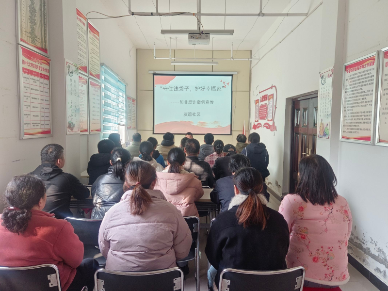 为切实提升辖区居民群众防非反诈意识和风险防范能力,有效遏制电信网络诈骗、非法集资等违法犯罪案件在社区发生,12月9日,蚌山区友谊社区组织居民群众在社区会议室举办防非反诈宣传活动,切实为居民财产安全筑牢“防护网”。