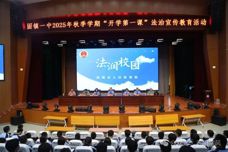 为深入推进法治校园建设,引导青少年树立法治观念、厚植爱国情怀,9月17日下午,固镇县科协、固镇县检察院在固镇一中举办了2025年秋季学期“开学第一课”法治宣传教育活动。此次活动以“绿色、成长、法治”为核心主题,通过生动的检察职能解读与深刻的历史教育,为师生们带来一堂兼具法治温度与爱国深度的思政课。