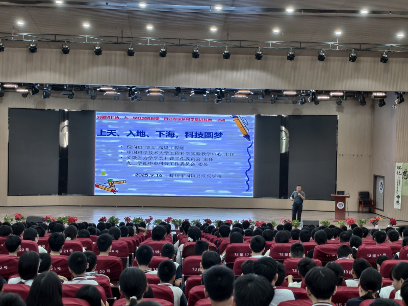 为普及科技知识,培养学生崇尚科学、热爱科学、学习科学的意识,9月16日,固镇县科协、固镇县教育局联合蚌埠市九三学社在固镇县汉兴学校共同举办了“2025年全国科普月暨科普主题讲座”活动,为广大师生来了一场前沿科技知识的科普盛宴。