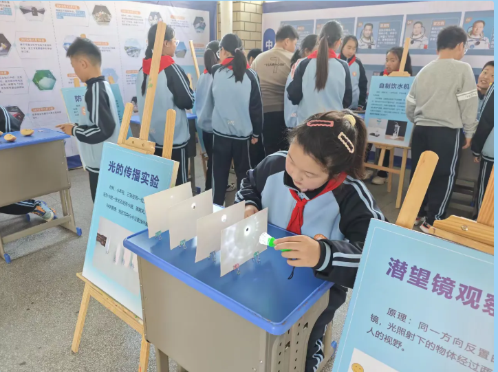 午后时光同样精彩。下午第一节课,各班教室同步播放《科创中国之治》《AI我大国工匠制造》等纪录片,带领学生领略科技赋能国家发展的磅礴力量。14时起,上午的科技实践、大篷车体验、社团成果展三大活动继续开展,学生们根据兴趣自由参与,在反复体验中深化对科学的认知。