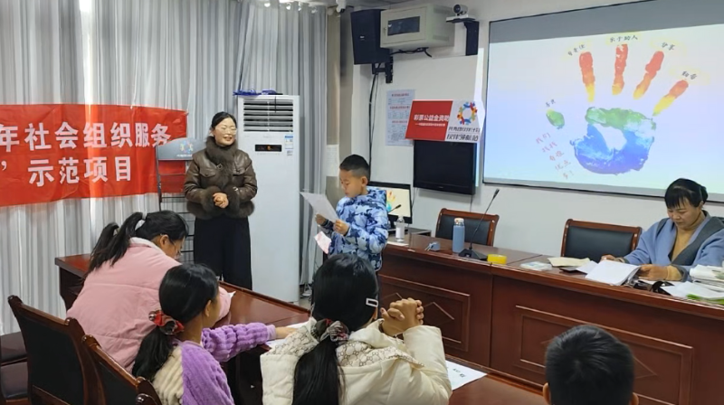 紧接着,活动进入心理健康辅导环节。志愿者首先带领同学们进行轻松愉快的手指互动操,帮助孩子们放松身心。随后开展的《我的自信手掌》活动中,每位孩子在A4纸上拓印出自己的手掌印,并在每个手指区域内写下自己、家人和朋友的优点。这一环节不仅增强了孩子们的自我认知与自信心,也促进了他们对亲情与友情的感悟。