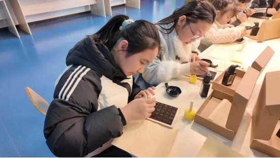 手工体验环节将活动推向高潮。在工作人员与志愿者的细致指导下,大家化身“小小印刷匠”,沉浸式体验选字、排版、蘸墨、拓印的完整流程。当“丙午新岁”“书香致远”等字样跃然纸上,成就感洋溢在每位参与者的脸上,大家纷纷展示亲手制作的作品,定格这份独特的文化记忆。