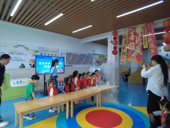 伴随着孩子们的欢声笑语,在蚌埠市科协指导下,怀远县科协与怀远县科技馆“全国科普月”科普活动在9月25日走进小金星幼儿园。机器人舞蹈与干冰魔术在这里轮番上演,让科学的种子在幼儿的心灵中生根发芽。现场气氛热烈,充满了好奇与惊叹。