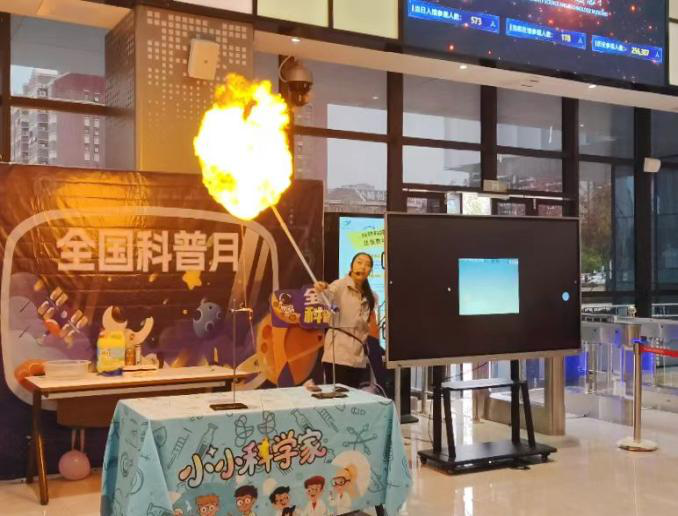 压轴的“防患与未‘燃’”科学实验秀”以直观实验揭示火灾隐患。氢气球爆炸、发胶爆燃、丁烷火焰、模拟锂电池起火等场景轮番上演,震撼全场。老师边演示边讲解火灾原理,并现场示范干粉灭火器“提、拔、握、压”的正确使用方法,让观众在惊叹中牢记应急技能。活动通过“动手做、亲身感、亲眼见”的方式,将消防知识融入体验,有效提升了公众的火灾防范与自救能力。