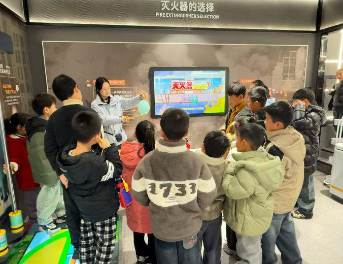 在“安全‘研’习社”中,科普辅导员们带领观众深入“安全守护”展厅,对常设展项进行深度解读。观众不仅学习了如何针对不同火情选择灭火器,探讨了日常饮食中的安全误区,还通过《高空抛物》互动装置,直观感受到高空坠物的巨大危害,深刻理解了“隐患就在身边”的道理。