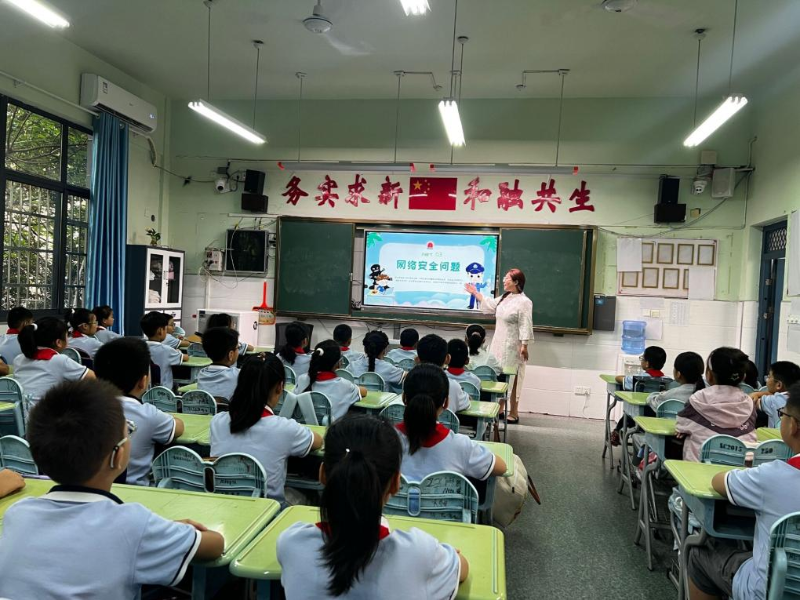 学校四年级22个班级同步开展了网络安全主题班会,通过用通俗易懂的语言、生动鲜活的案例,向同学们讲解网络安全的重要性、日常生活中可能遇到的网络安全风险及如何消除身边的网络安全隐患。