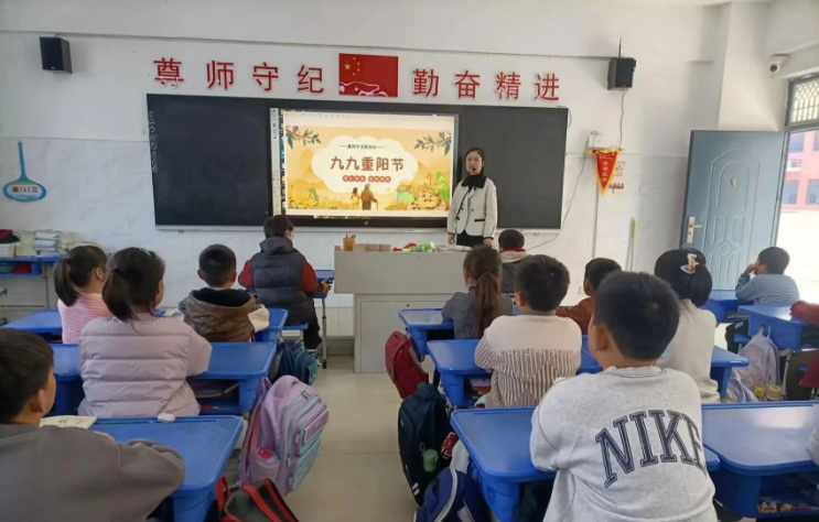 班队会上,辅导员未用传统说教,而是以生动故事串联历史、有趣视频还原场景,向队员们立体讲解重阳节的起源、习俗与文化意义。这种沉浸式方式,让“重阳节”从文字变为可感知的文化符号,不仅帮队员读懂节日习俗,更让他们领悟背后“敬老感恩”的精神内核,为后续践行美德筑牢认知基础。