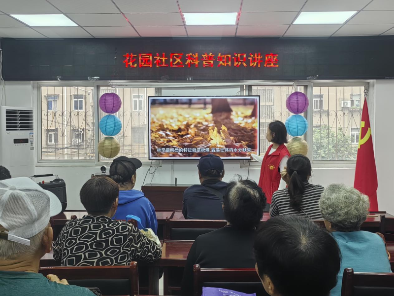 在“健康养生科普讲座”现场,社区志愿者用通俗的语言讲解秋季养生等知识。针对居民常转发的“养生谣言”,逐一拆解,比如“喝隔夜水会致癌”“吃素能治愈所有疾病”等误区。