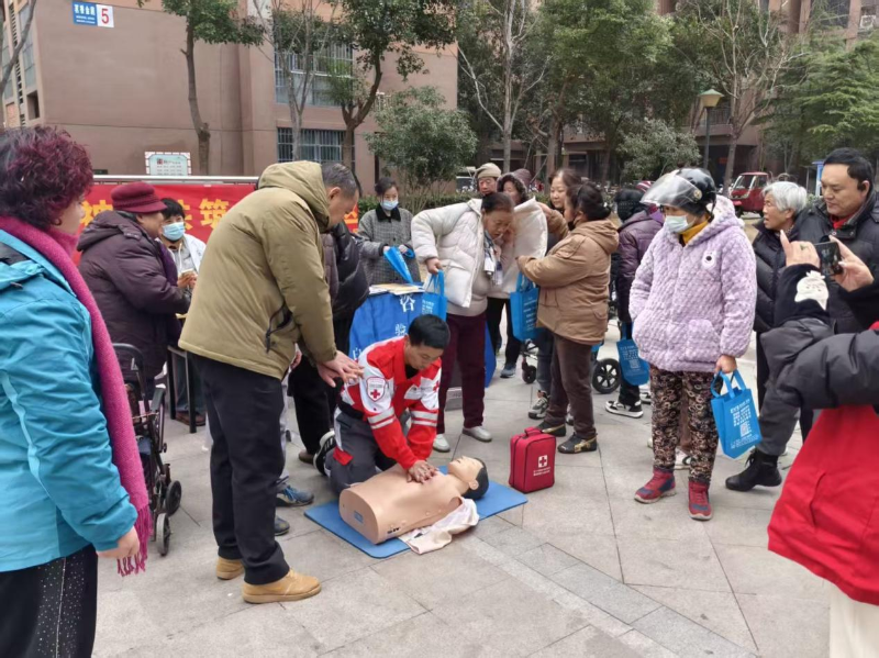 在义诊服务区,来自爱尔眼科的医护人员为居民提供血压测量、健康咨询、常见眼病检查诊疗等服务。红十字会志愿者则围绕急救知识开展科普宣传,现场演示心肺复苏、海姆立克急救法等实用急救技能。演示过程中,志愿者用通俗易懂的语言讲解操作要点,手把手指导居民实践操作,耐心解答大家在日常急救中遇到的问题,详细说明心脏骤停、气道异物梗阻等突发情况的应急处置流程,让居民直观掌握实用“救命技能”,切实提升自我保护和应急救助能力。
